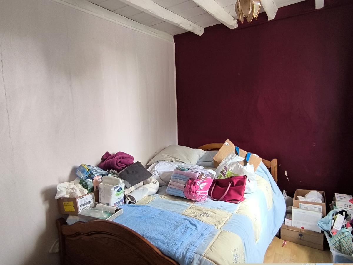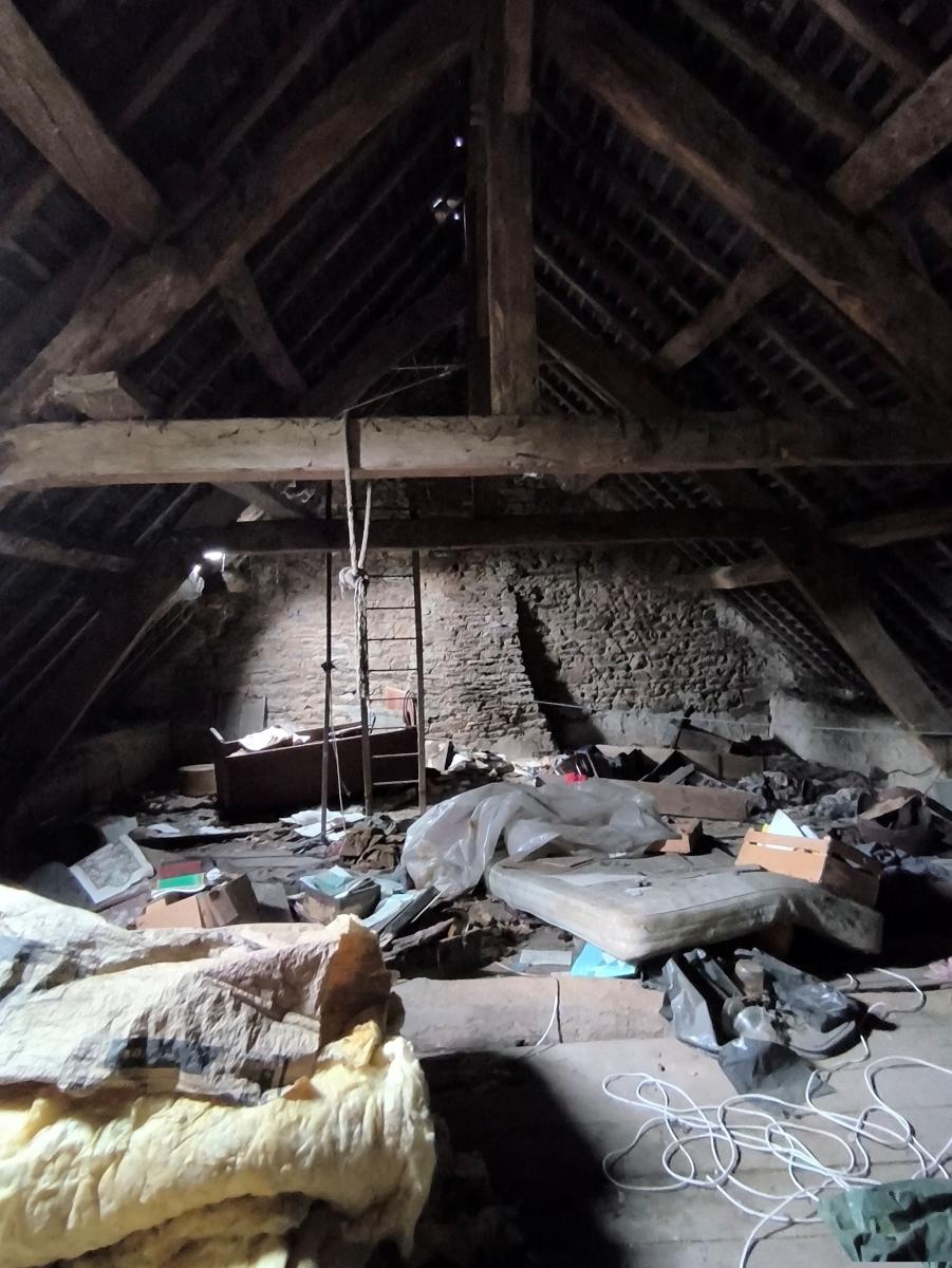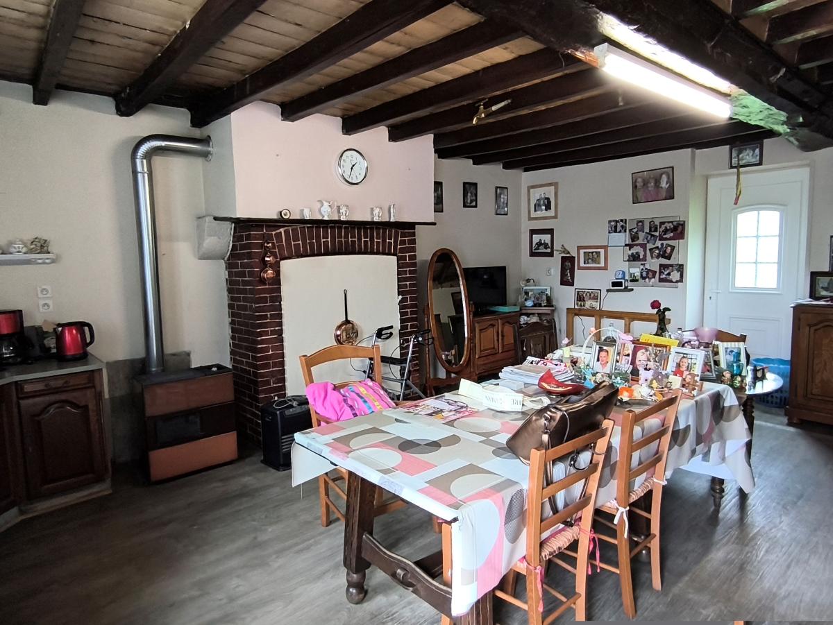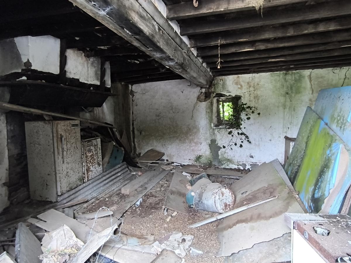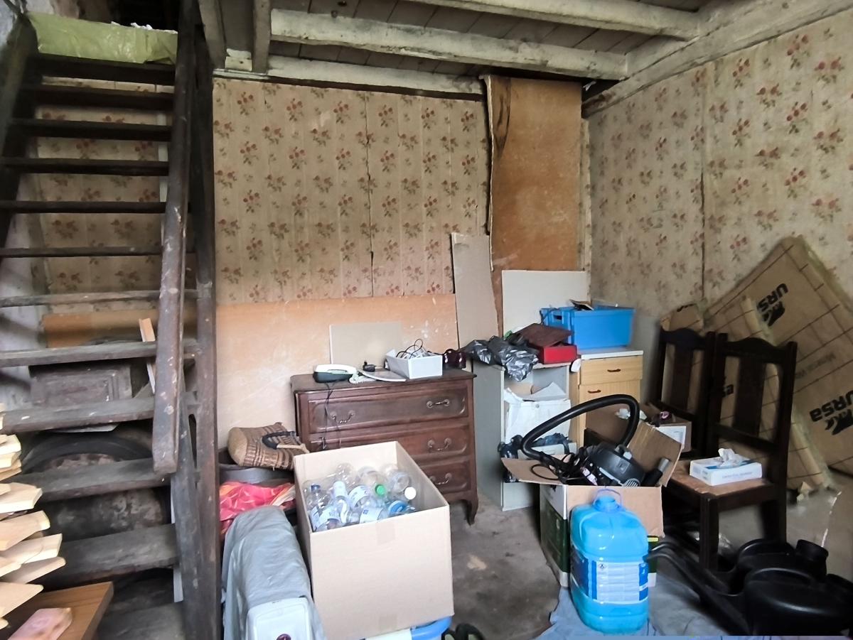 Le rez-de-chaussée est composé d'un séjour-cuisine avec poêle à fioul, une pièce, une chambre.