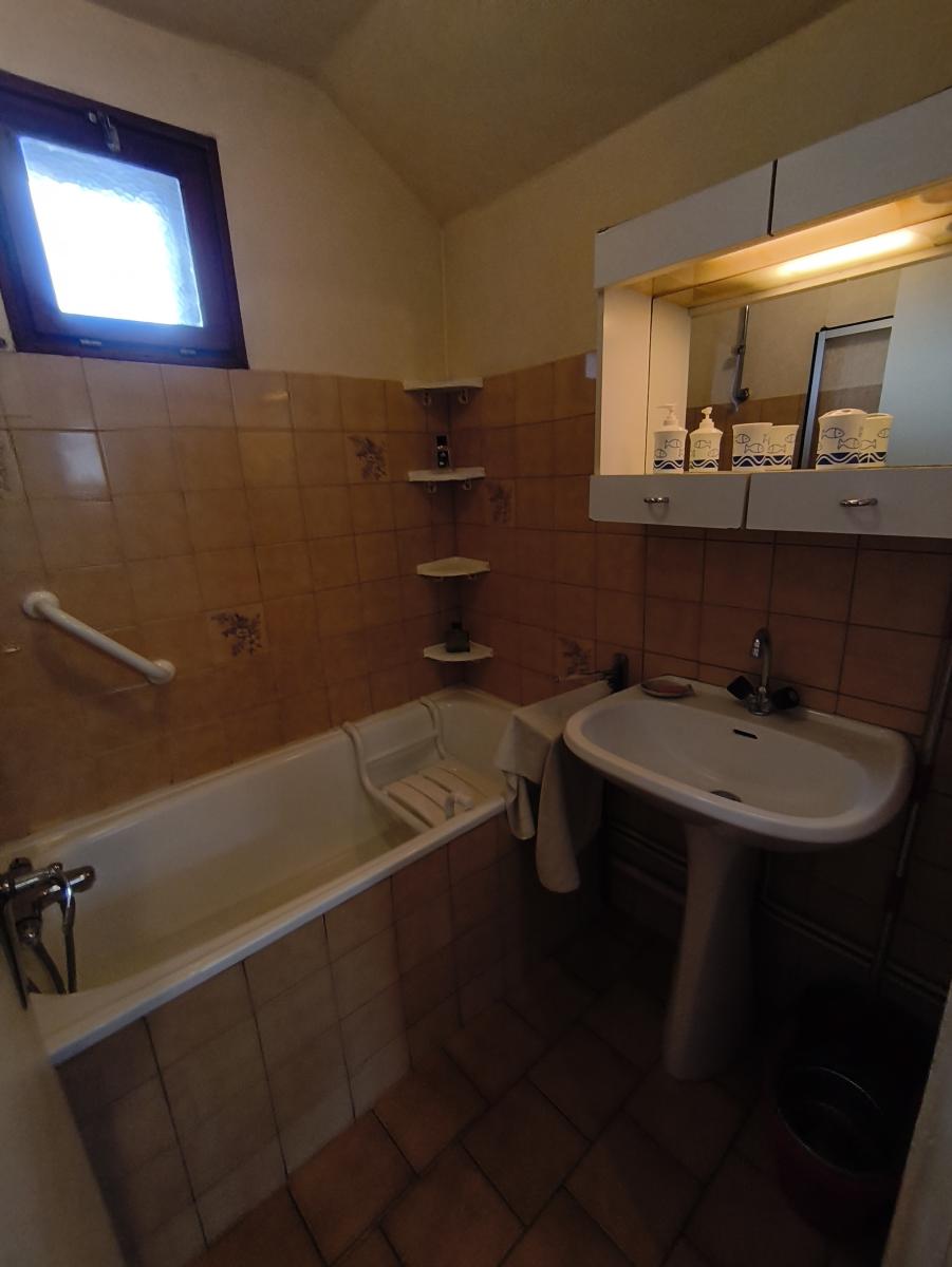 Le rez-de-chaussée est composé d'une véranda, un séjour, une cuisine ouverte, buanderie, salle de bains, wc, une chambre, salle d'eau avec wc, dégagement-chaufferie.