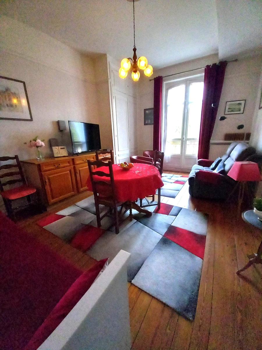 Appartement de deux pièces - 3ème étage - ascenseur composé : entrée - cuisine aménagée (porte-fenêtre ouvrant sur balcon) - séjour (placard) porte-fenêtre ouvrant sur balcon - chambre (porte-fenêtre ouvrant sur balcon) - salle d'eau (douche, lavabo et WC, branchement lave-linge. Cave et parking. Immeuble soumis au statut de la copropriété lots : 128. Charges de copropriété : 1300 €/an.