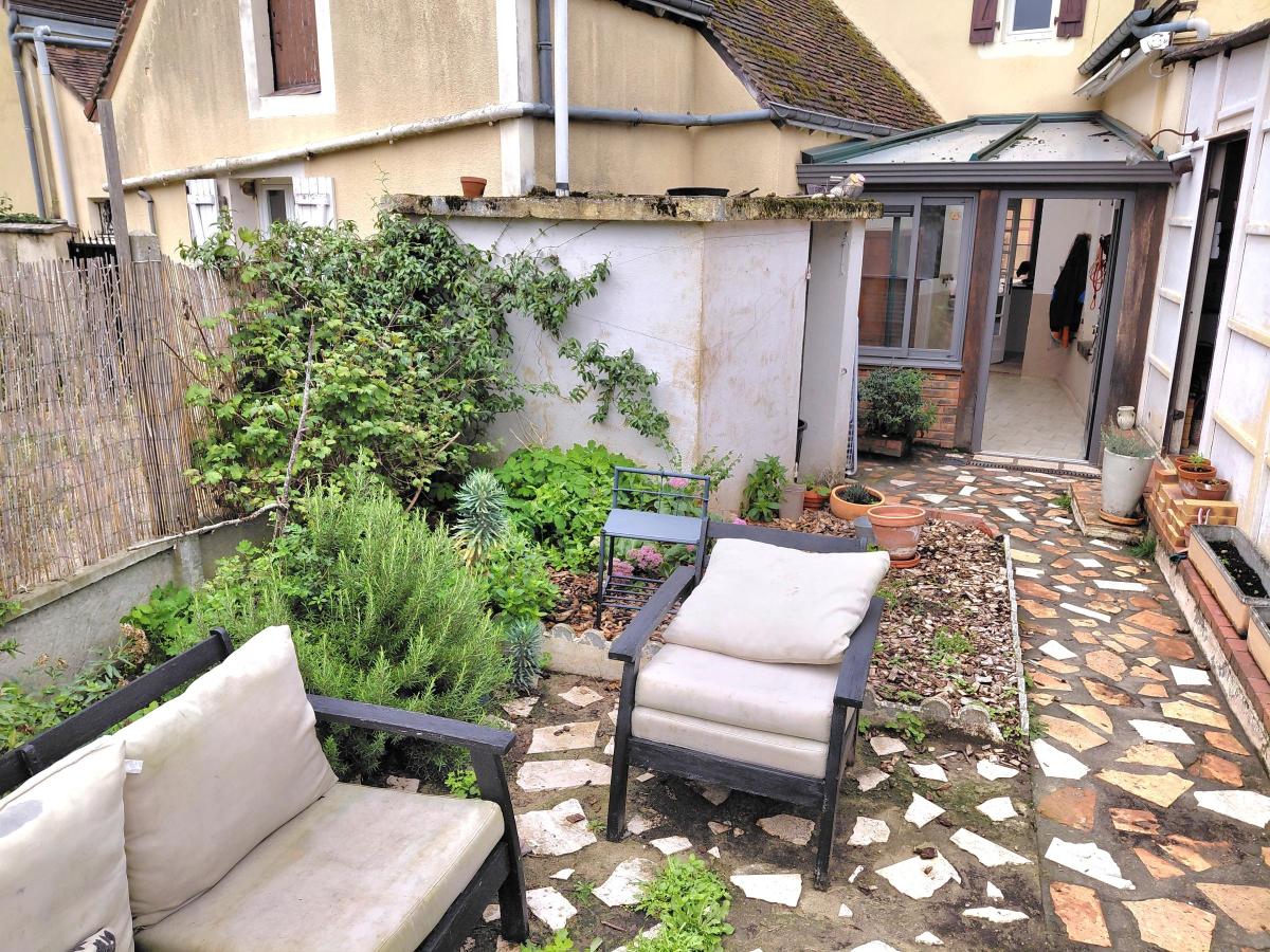 Charmante maison d’environ 93 m² sur 3 niveaux, avec cour intime, garage attenant, jardin indépendant de 732 m² avec 2e garage et appentis.