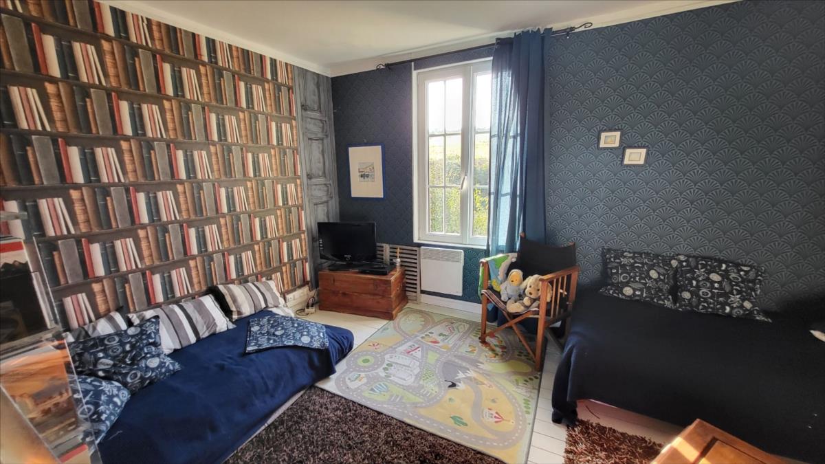 Belle maison en brique rénovée avec goût d'environ 106 m² comprenant : séjour avec cheminée, ouvert sur cuisine aménagée et équipée, buanderie, salle de douche avec wc suspendus et radiateur sèche-serviettes; à l'étage : palier desservant trois belles chambres parquetées, salle de douche avec wc suspendus; Chauffage électrique. Grenier au-dessus avec deux lucarnes. Triple vitrage au rez-de-chaussée ; double vitrage à l'étage. Dépendance attenante avec ancien haloir en brique et autre dépendance attenante en colombage avec cheminée.Logement à consommation énergétique excessive