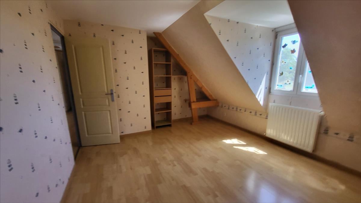 Dans un quartier au calme, et proche de quelques commerces, belle maison d'environ 135 m² bien entretenue comprenant : belle entrée avec escalier, séjour avec cheminée équipée d'un insert ouvert sur cuisine aménagée et équipée (réfrigérateur, hotte aspirante, plaque de cuisson), une chambre avec salle de douche à l'italienne, wc séparés, bureau ou chambre avec placards ; à l'étage : pièce-mezzanine surplombant l'entrée, trois chambres, wc séparés, grande salle de bains avec baignoire et douche), placards et radiateurs sèche serviettes ; chauffage au fioul + cheminée ; Volets roulants; sous-sol complet avec adoucisseur d'eau comprenant buanderie avec point d'eau, garage, cave à vin l'ensemble sur 1030 m² de jardin avec terrasse.
