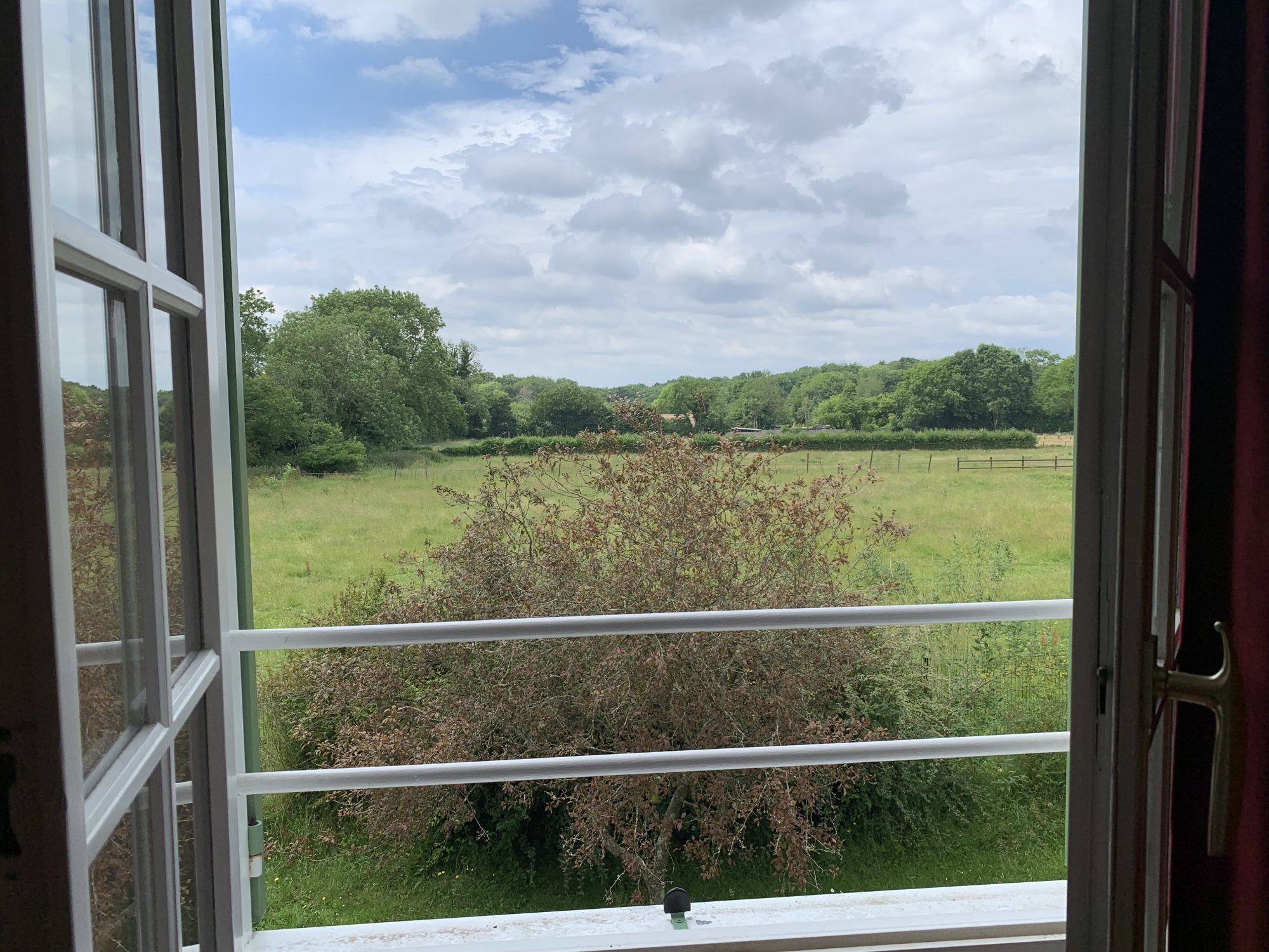 A l'étage: palier avec placards, 3 chambres, bureau, salle d'eau et wc.